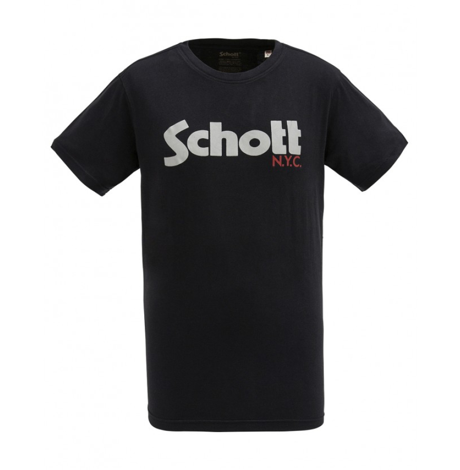 • Футболка SCHOTT Crew neck T-shirt TSLOGO Black reflect