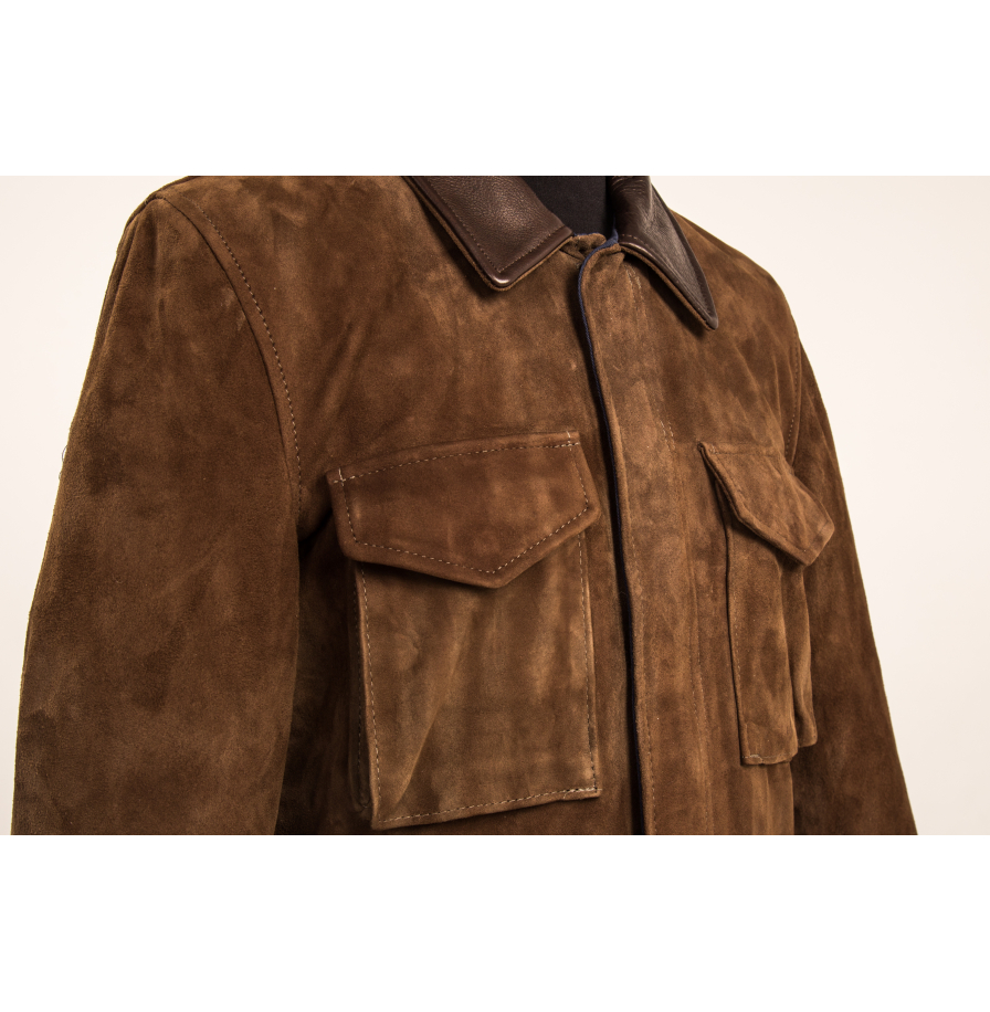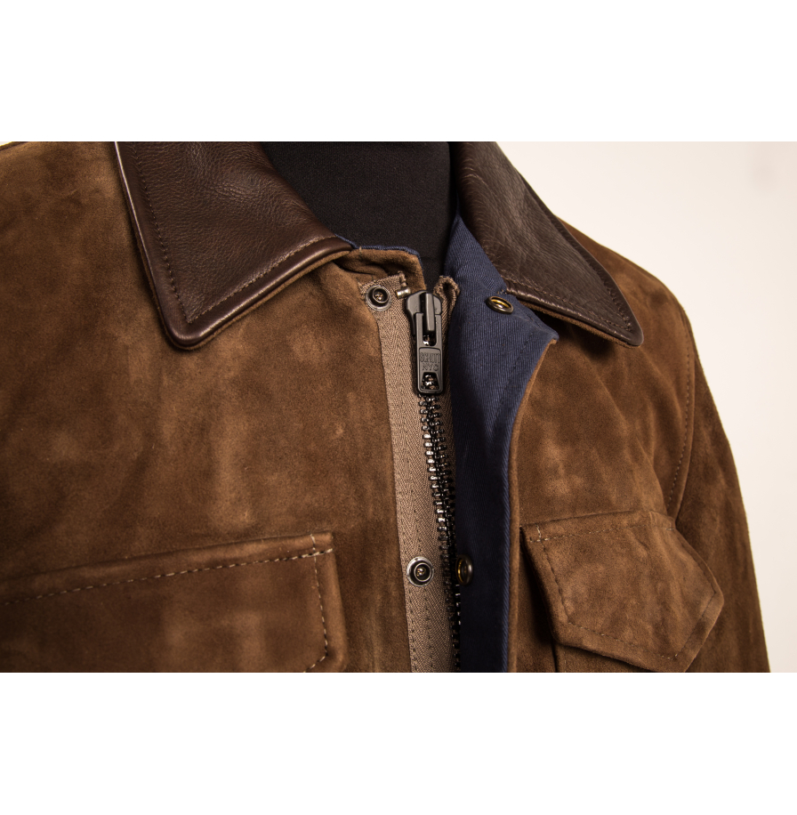 • Главная особенность куртки — премиальная козья замша (Goat Suede), которая отличается особой мягкостью и легкостью. Материал невероятно приятен на ощупь, легок и при этом отличается высокой прочностью.