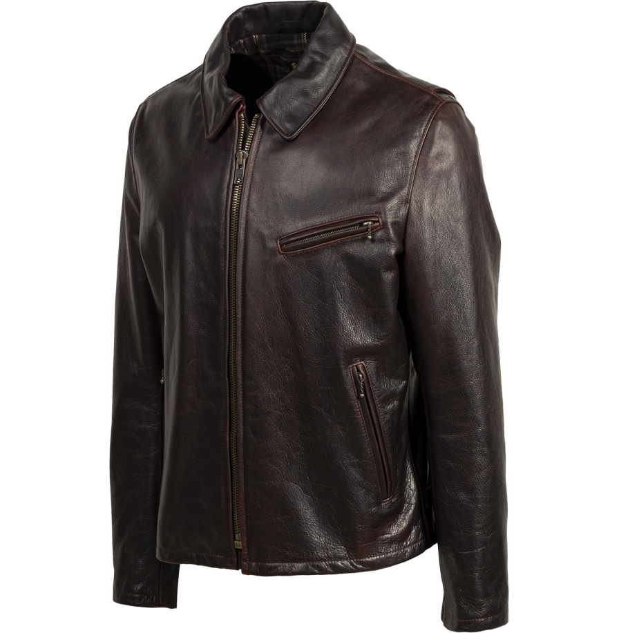 • Мужская куртка SCHOTT WAXY PULLUP COWHIDE в оттенке Brandy — солидная модель из плотной коровьей кожи типа Pull‑up. Глубокий бордовый цвет с эффектом патины придаёт изделию особый шарм и индивидуальность.