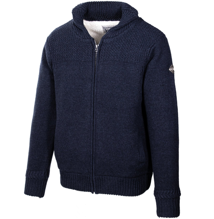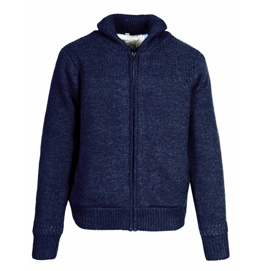 • Он связан тройным узором, имеет подкладку из искусственного меха, два боковых кармана, эластичные манжеты и низ.