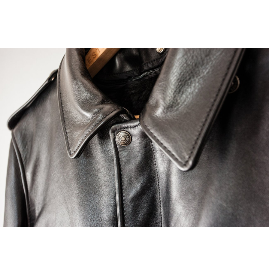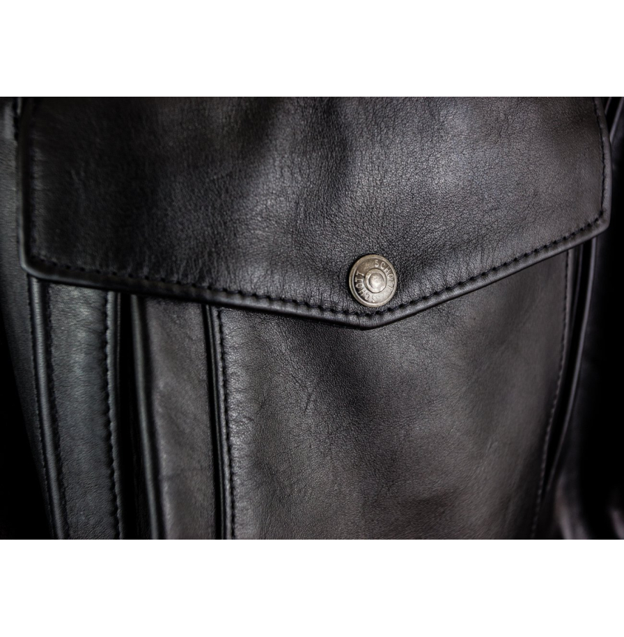 • Куртка A-2 184SM пошита из коровьей кожи высшего качества, которая сочетает в себе комфорт и долговечность. Кожа может похвастаться естественной плотной структурой с открытыми порами, которая обеспечивает более мягкое прикосновение и превосходный комфорт. Полностью анилиновый процесс барабанного окрашивания сохраняет текстуру кожи, усиливая ее естественную зернистость с помощью тонкого полуматового покрытия. Затем она подвергается вакуумной сушке (вместо температурной сушки), что приводит к немного более жесткому результату, поскольку волокна не растягиваются и не размягчаются. Кожа предназначена для того, чтобы изящно стареть и расширять свои характеристики с течением времени.