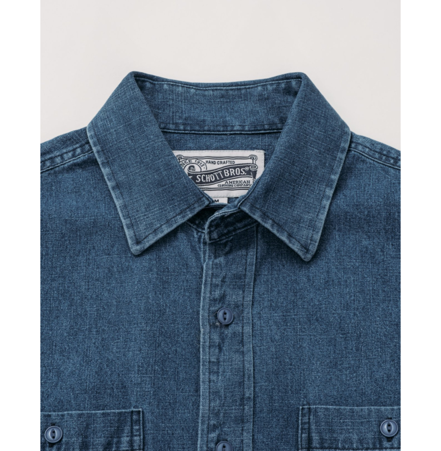 • Рубашка SCHOTT Denim Work Shirt LIGHT INDIGO